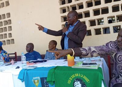 L’un des Conférencier, Maître SIGNE ETIENNE, Coordonnateur National de la FOJCAM, Fondateur du Centre de Désintoxication CENRARUD de Bafoussam a pris exactement 39 minutes de parole pour présenter de façon simple et précise, la définition des drogues, leurs types et les dangers liés à leur usage. Il a par ailleurs insisté sur l’impact de ces substqnces psychotropes sur l’évolution scolaire de leurs jeunes consommateurs. Avant de clore sa présentation, lumière a été faite sur quelques techniques pour dénoncer secrètement et sagement toute manipulation de substances dangereuses au sein de nos communautés pour une prise en charge efficiente qui passe par la préservation de la dignité des victimes.