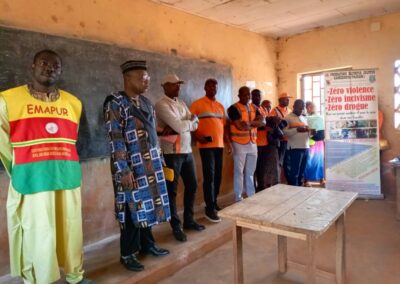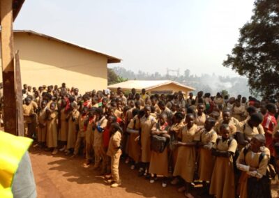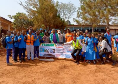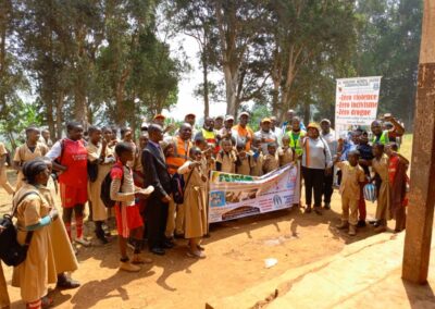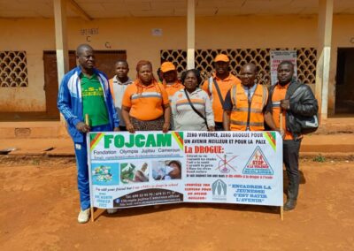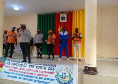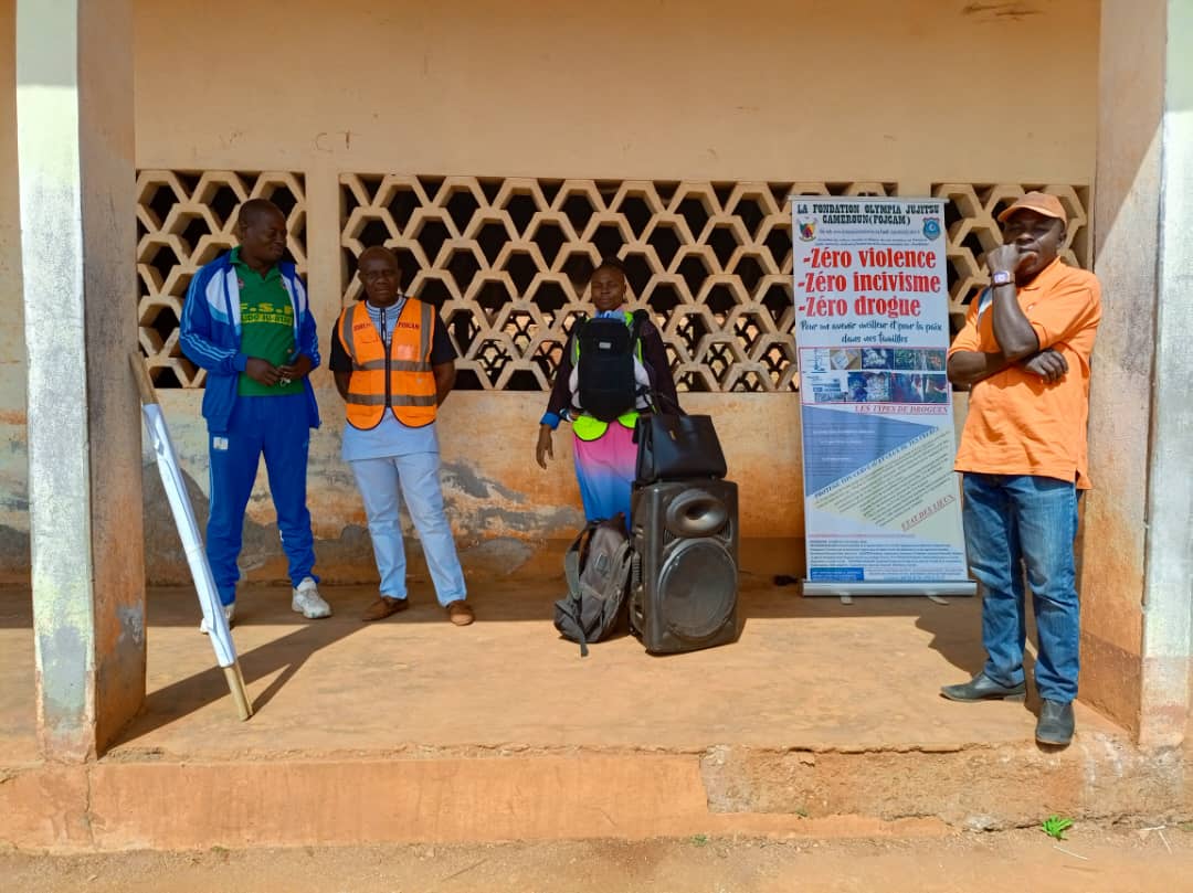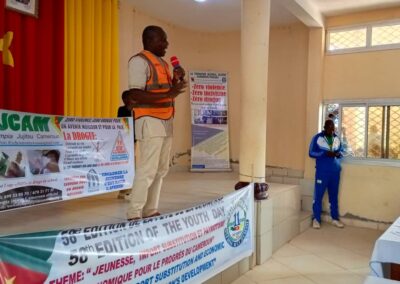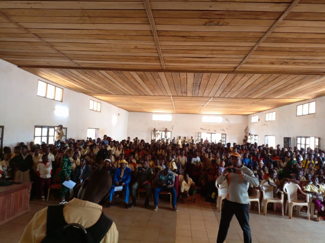 A Bamendjou, un arrêt a été observé à la Sous-préfecture de la place. L’objet de cette campagne a été brièvement présenté à l’Autorité Administrative, qui a apprécié l’initiative. L’équipe de sensibilisation s’est d’abord dirigée au Lycée Bilingue de Batié à 10h00, puis à la salle du parti de la ville à 11h30, où les élèves du primaire et du secondaire constituant une grande partie de la jeunesse locale, réunis autour de leurs activités culturelles, ont eu l’oportunité de bénéficier du message porté par les agents sensibilisateurs de la FOJCAM.