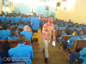 c’était à l’occasion de la fête patronale du Collège bilingue SAINT THOMAS d’AQUIN de Bafoussam que Mr SIGNE ETIENNE, coordonnateur National FOJCAM a tenu une sensibilisation de présentation des conséquences liées à la consommation des drogues et stupéfiants aux élèves de ce collège réunis dans la chapelle de la Paroisse Saint BARNABE de KOUOGOUO 2 au cours de la messe d’action de grâce célébrée par le père NOUBOUSSE Innocent, principal dudit collège , assistés du père Valentin TCHEUTCHOUA, aumonier et du père PROCUREUR économe  du diocèse de Bafoussam.
