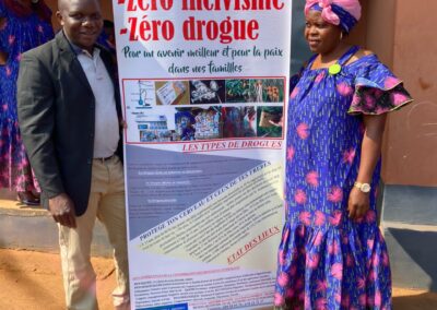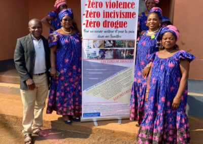 Répondant à l’invitation de Madame NOUMELA NJOMO Philomène, Déléguée Départementale des Affaires Sociales de MIFI, l’équipe opérationnelle FOJCAM conduite par Maître SIGNE Etienne, Coordonnateur National de cette organisation a donné aux participants QUELQUES SUBSTANCES CHIMIQUES ET NATURELLES PSYCHOACTIVES LES PLUS CONSOMMÉES PAR LES JEUNES CAMEROUNAIS, LES MÉCANISMES D’ENROLEMENT DES JEUNES DANS LA CONSOMMATION DES STUPÉFIANTS, QUELQUES INDICES DE CONSOMMATION DES DROGUES PAR UN ENFANT.