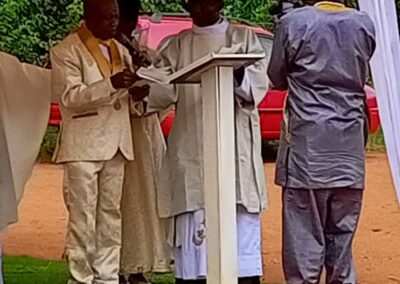 La grande cours de la chapelle Saint André de BAKONG a servi de cadre ce samedi 19 Juin 2024 à l’action de grâce à l’occasion des 51 ans de mariage des parents du révérend père YOMI KOUISSI INNOCENT, scj PRÊTRE du sacré coeur de Jésus, VOLONTAIRE NATIONAL DE LUTTE CONTRE LES VIOLENCES, L’INCIVISME ET LA CONSOMMATION DES DROGUES PAR LES JEUNES.