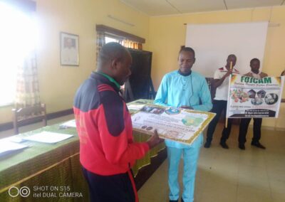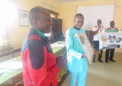 LA SÉANCE S’EST ACHEVÉE PAR L’ÉCHANGE DES CADEAUX ENTRE LES 2 PARTENAIRES ( SEDUC DU DIOCÈSE DE BAFIA – FOJCAM).