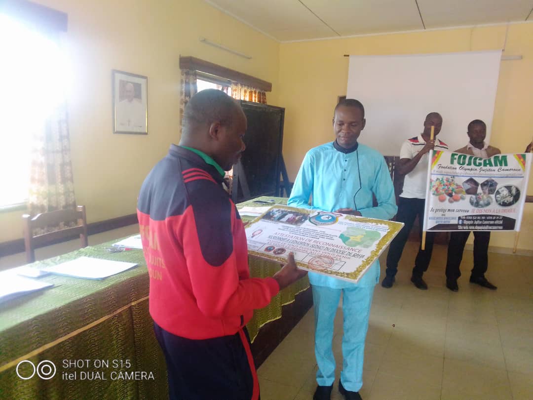 Porteur d’une lettre de reconnaissance du Comité National FOJCAM de lutte contre les violences, l’incivisme et la consommation des stupéfiants, Maître SIGNE Etienne a dit la gratitude de l’organisation qu’il coordonne au Cameroun à son nouveau partenaire dans la lutte contre ces FLÉAUX SOCIAUX.