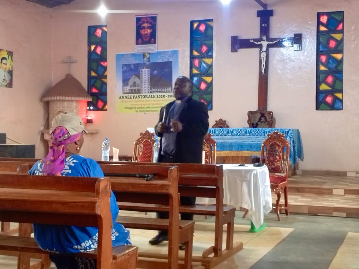 Plusieurs slogans ont été lancés et repris en choeur par participants et leurs prêtres reunis pour la circonstance dans la chapelle de la paroisse ; sous le regard attentif du révérend pere ANDRÉ MARIE KENGNE, chargé des conférences de carême 2026 et par ailleurs Curé de la paroisse Saint Jean Baptiste de Tougang 2