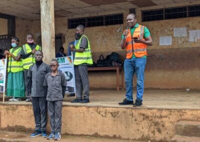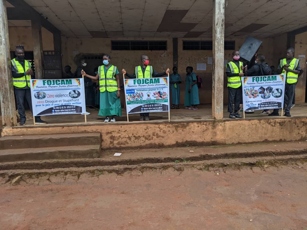 Après la cérémonie de levée de couleur et l’exécution de l’Hymne National, la parole à été donnée à l’équipe opérationnelle FOJCAM conduite par Maître SIGNE ETIENNE, Coordonnateur National FOJCAM pour la RÉDUCTION DES VIOLENCES, L’INCIVISME ET LA CONSOMMATION DES DROGUES ET STUPÉFIANTS PAR LES JEUNES CAMEROUNAIS.
