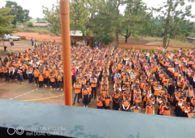 C’EST PAR UNE GRANDE CAMPAGNE DE SENSIBILISATION DES ÉLÈVES CONTRE LES VIOLENCES, L’INCIVISME ET LA CONSOMMATION DES DROGUES QUE L’ÉQUIPE OPÉRATIONNELLE FOJCAM À COMMENCÉ LES ACTIVITÉS INCLUSES DANS LA DITE CONVENTION AU COURS DE LA CÉRÉMONIE DE LEVÉE DES COULEURS CE LUNDI 19 SEPTEMBRE 2022.