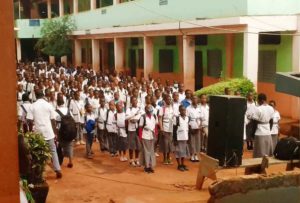 Tout à commencé par l’exécution de l’Hymne National, du propos introductif de Monsieur le Principal TAGUEDJIO Isaac puis l’exposé du Coordonnateur National FOJCAM, MAÎTRE SIGNE Etienne. C’est après le résumé de l’exposé en anglais par un des membres de l’administration de ce collège que l’équipe opérationnelle FOJCAM a pris congé en souhaitant 100% aux examens officiels et en renouvelant sa disponibilité à accompagner tout le Groupe SOCINAN dans la lutte contre les violences, l’incivisme et la consommation des drogues et stupéfiants par les élèves.
