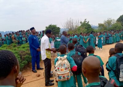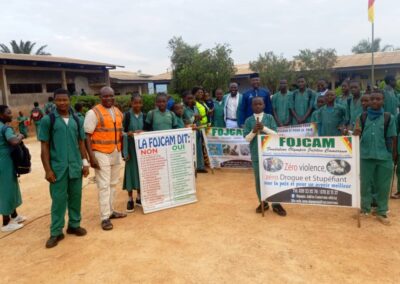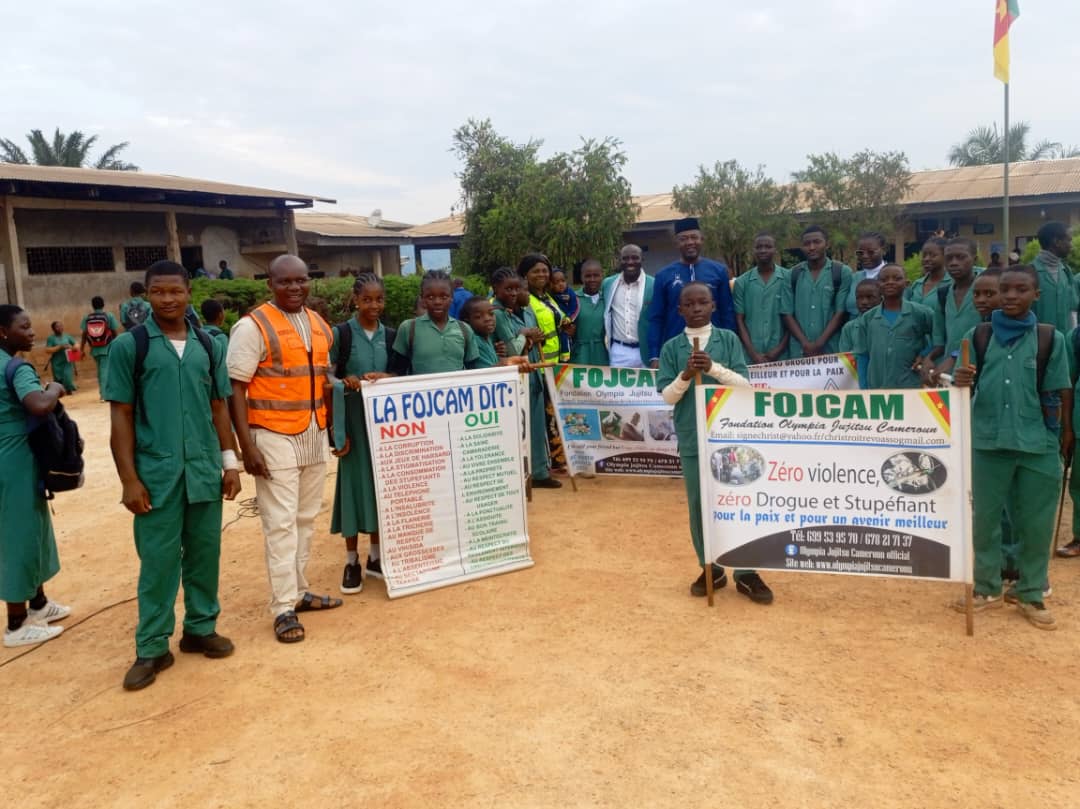 Ce 04 OCTOBRE 2024, au cours de la traditionnelle cérémonie de levée des couleurs, La grande cours du campus du lycée Bilingue de TOUGANG 2 servi de cadre pour une campagne de sensibilisation des élèves avec pour objectif principal, CONTINUER À LA RÉDUCTION DES VIOLENCES, DE L’INCIVISME ET L’USAGE DES DROGUES PAR LES ÉLÈVES.