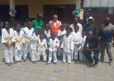 Près de 27 enfants pour le Club FOJCAM – AMIS DE JÉSUS, viennent de prendre part au stage harmonisé pour le passage de grade. Sur la coordination de maître Étienne Signé coordonnateur national FOJCAM, accompagné des membres du comité national FOJCAM. Et sous la direction de Mme la directrice de école bilingue les AMIS DE JÉSUS, les parents et population de bonamoussadi.