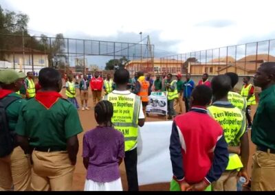 C’est à l’occasion de la journée de JESE 2022 que les agents bénévoles FOJCAM conduits par Maître SIGNE ETIENNE, Coordonnateur National et instructeur international de judo-jujitsu ont animé un atelier de sensibilisation des jeunes sur les fléaux sociaux : violence et harcèlement en milieu scolaire, consommation des stupéfiants.