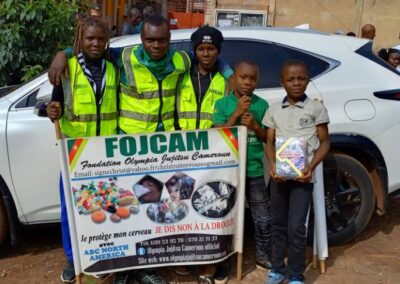 Autour du thème retenu pour l’édition 2025, “LES FAITS SONT CLAIRS, INVESTIR DANS LA PRÉVENTION” l’équipe opérationnelle de la Fondation olympia Jujitsu Cameroun, sous la conduite de Maître SIGNE ETIENNE, Coordonnateur national des volontaires de lutte contre les violences, l’incivisme et la consommation des drogues a PRÉSENTÉ LES CONSÉQUENCES LIÉS À L’USAGE DES DROGUES ET SON IMPACT DIRECT SUR LA PAIX DANS NOS FAMILLES.