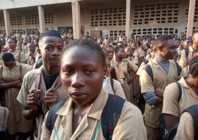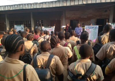 Après la définition de quelques thermes, Maître SIGNE ETIENNE, Coordonnateur FOJCAM a donné aux élèves les types de drogue, les conséquences liées à la consommation des drogues et sur l’évolution scolaire ainsi que leur impact sur la paix dans nos familles.