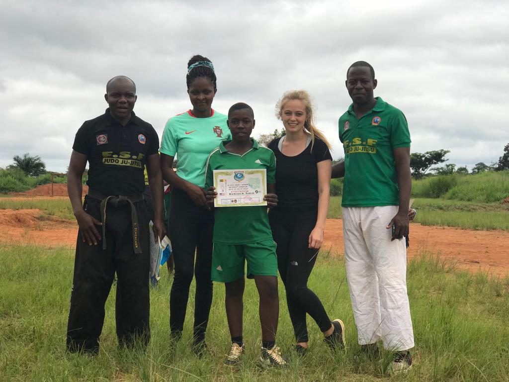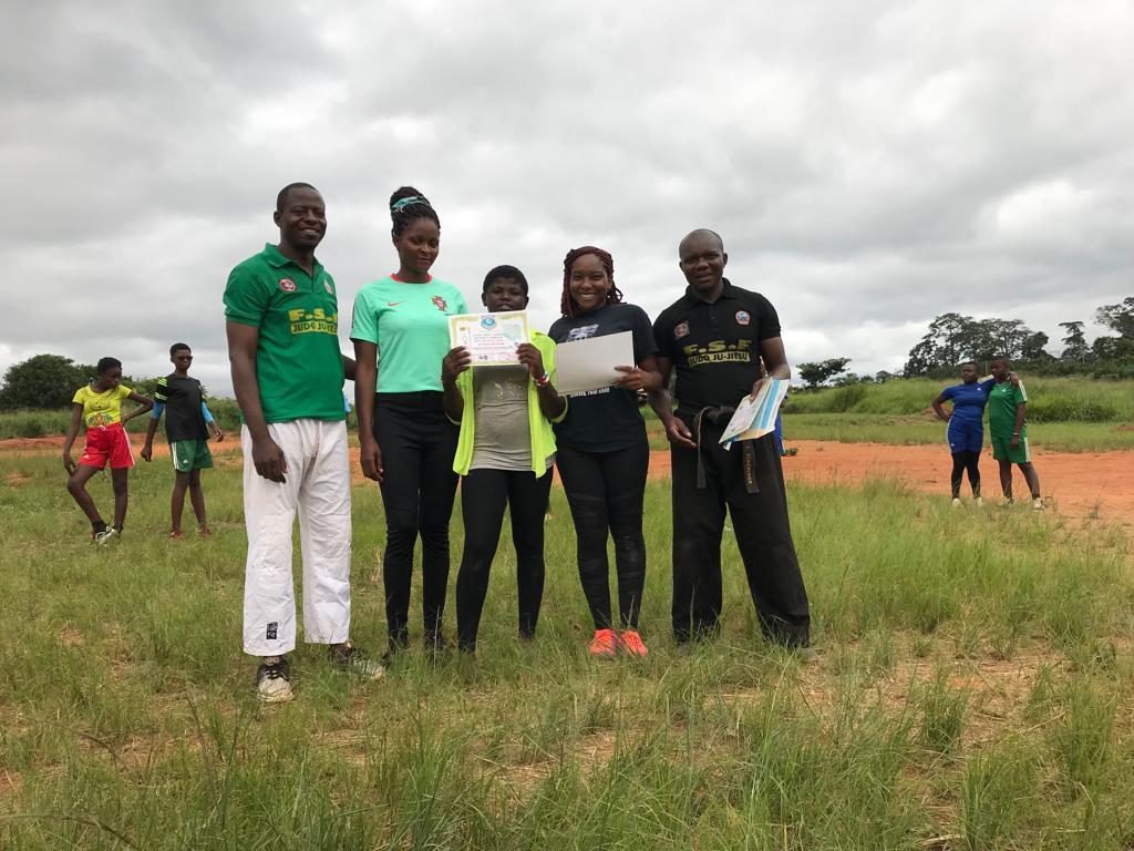 l’esplanade de la cours du lycée bilingue de Nkoteng a servi de cadre les 29 et 30 juillet 2019 au séminaire de formation en self défense Jujitsu à l’occasion du camp interrégional (centre et Est du peace corps baptisé CAMP DES VAINQUEURS, sous la coordination de Me SIGNE Étienne, instructeur modérateur du seminaire, assistés de Menye Jean chrisostome et de Dassi Minette Thiophie, respectivement secrétaire du pool ouest de la FONDATION OLYMPIA JUJITSU CAMEROUN et chargée de la formation ladies.