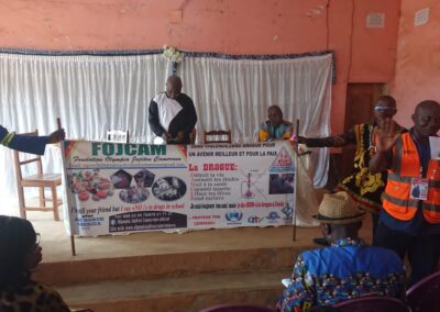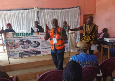 C’est la salle polyvalente de cet établissement scolaire situé dans l’Arrondissement de Bafoussam 3, Département de MIFI, Région de l’Ouest qu’une équipe opérationnelle FOJCAM conduite par Maître SIGNE ETIENNE, son Coordonnateur National, a tenu une séance de renforcement de capacités de 100 personnels et enseignants DE L’ÉTABLISSEMENT 1er aux examens OBC dans la Région de l’Ouest Cameroun.