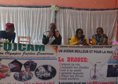 Dans son exposé, Maître SIGNE ETIENNE a édifié les enseignants sur quelques mécanismes d’enrôlement des jeunes dans la consommation des drogues, les substances chimiques et naturelles psychoactives manipulées par les élèves, quelques indices ou signes de consommation des drogues ; comment se comporter face à un élève soupçonné de consommation de drogue, quelques techniques de gestion pacifique des conflits à la manière des arts martiaux.