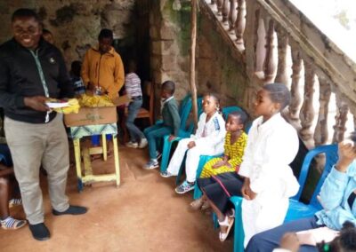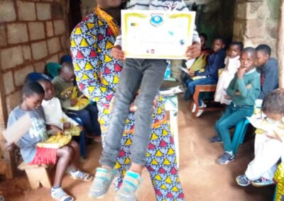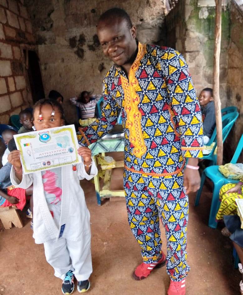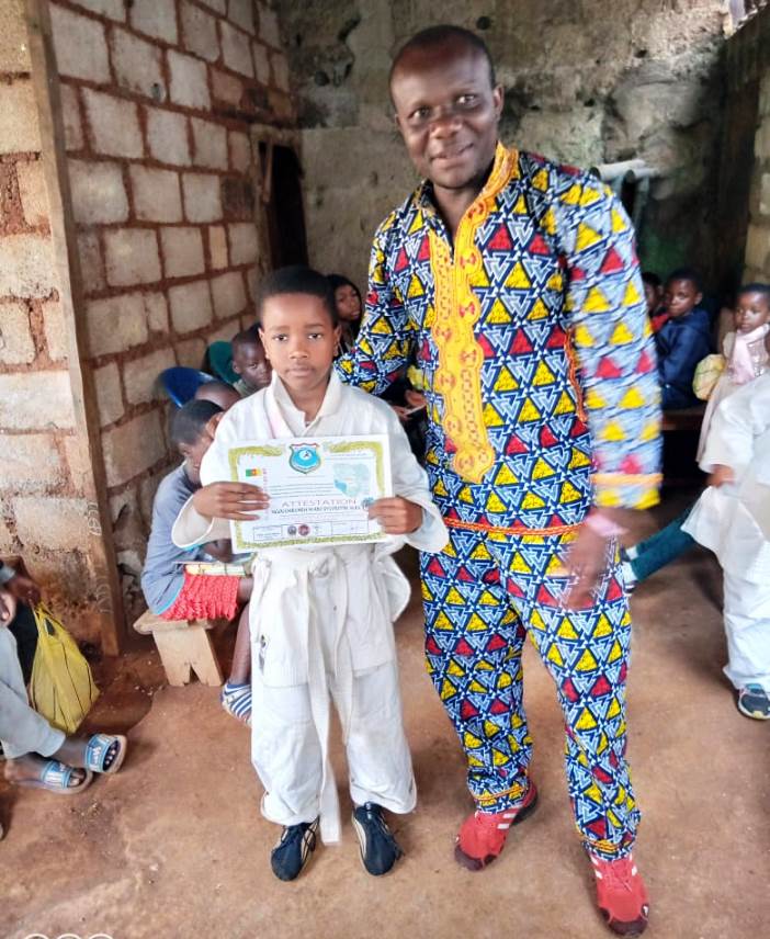 “Je suis très satisfait de la prestation de ces enfants, la FOJCAM compte sur eux comme pairs éducateurs dans les différents établissements scolaires pour sensibiliser leurs camarades sur ces FLÉAUX SOCIAUX QUI MINENT LE MILIEU ÉDUCATIF AU CAMEROUN DEPUIS QUELQUES ANNÉES. Je remercie toute l’équipe opérationnelle FOJCAM qui s’est déployée depuis le 4 juin dans cette salle et même en dehors pour que ces enfants soient bien formé aux valeurs morales et éthiques des arts martiaux, aux codes de déontologie FOJCAM, aux techniques de gestion pacifique des conflits et surtout aux techniques d’approches pour aider leur camarades à dire ZÉRO VIOLENCE, ZÉRO DROGUE POUR LA PAIX DANS NOS FAMILLES ET POUR UN AVENIR MEILLEUR