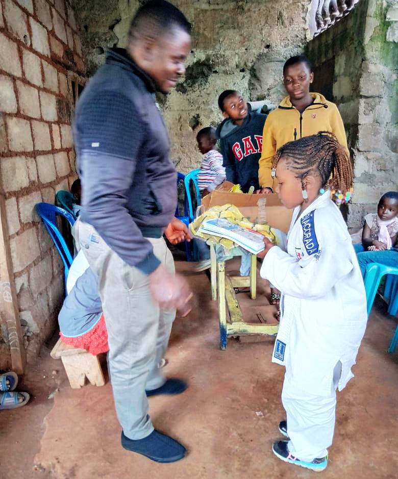En partenariat avec l’association HELPING HANDS, LA FOJCAM a procédé ce samedi 27 août 2022 à la cérémonie de remise des attestations de fin de stage de BABY-JUDO & JUJITSU par un examen technique dans le gymnase de la légion de gendarmerie de Bafoussam suivi de la remise des attestations et des fournitures scolaires au siège de l’association HELPING HANDS A BAFOUSSAM.