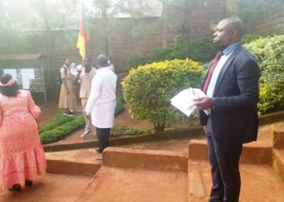 “JE SUIS UN PROVISEUR TRÈS HEUREUX ET HONORÉ POUR LE CHOIX QUE VOTRE PRESTIGIEUSE FONDATION À PLACE EN LA STRUCTURE CHARGÉE DE LA FORMATION DES JEUNES CITOYENS CAMEROUNAIS DONT J’AI LA CHARGE ICI À NGOUACHE; MILLE FOIS MERCI POUR LES ACTIONS QUE VOUS MENEZ DANS CE LYCÉE DEPUIS L’ANNÉE SCOLAIRE PASSÉE” Mr MOUMBE NGEUKO SYLVAIN HONORÉ, PLEG-PCT-H/E ; Officier des Palmes Académiques, Proviseur du Lycée Bilingue de Ngouache.