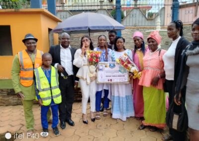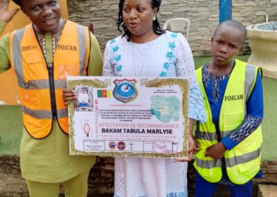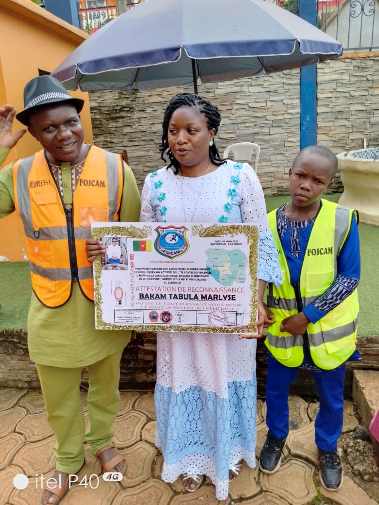 Le Coordonnateur National FOJCAM, Maître SIGNE ETIENNE a saisi cette occasion pour remettre UNE ATTESTATION DE RECONNAISSANCE à la sœur BAKAM TABULA MARLYSE pour son soutien aux actions sociales de la FOJCAM au Cameroun.